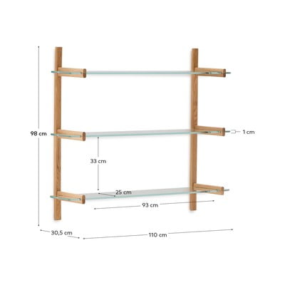 Szklany, powłoka: hartowanie, w naturalnym kolorze, szerokość 110 cm, wysokość 98 cm, głębokość 30,5 cm