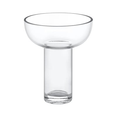 Ręcznie wykonany szklany wazon ma oryginalny kształt, który łączy w sobie szeroką górę w kształcie misy z solidną cylindryczną podstawą. Dzięki czystemu wzornictwu i przezroczystemu wykończeniu, stanie się on dyskretnym, ale przyciągającym elementem w Twoim domu.