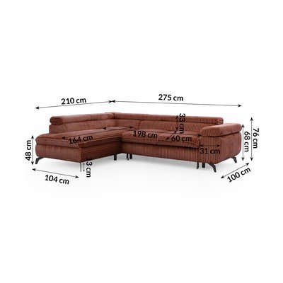 SztruksowyCzęściowo rozkładany/rozkładany/ze schowkiemLewostronny/w kształcie litery LW kolorze terakotyOdpowiedni dla zwierząt domowych/plamoodpornyCzteroosobowySzerokość 275 cm
