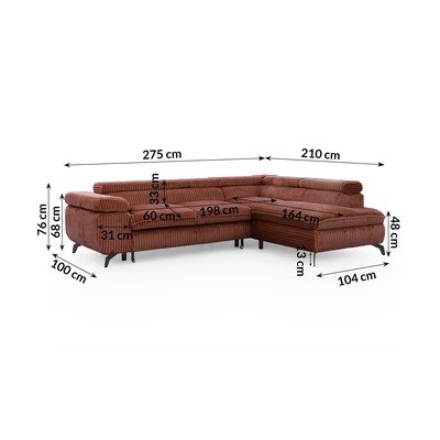 SztruksowyCzęściowo rozkładany/rozkładany/ze schowkiemPrawostronny/w kształcie litery LW kolorze terakotyOdpowiedni dla zwierząt domowych/plamoodpornyCzteroosobowySzerokość 275 cm