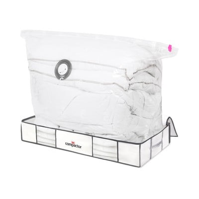 Świetny sposób na ład tak, aby nie zajmował wiele miejsca. Pojemniki, worki i pokrowce próżniowe to funkcjonalne produkty, dzięki którym Twoja szafa nie pięknie w szwach. Pochowasz sezonowe ubrania, ale też dodatkowe kołdry lub pościele. Zaoszczędź miejsce i ciesz się uporządkowanymi wnętrzami.