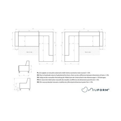 Rozkładany/ze schowkiemLewostronny/w kształcie litery LTurkusowyCzteroosobowySzerokość 253 cm