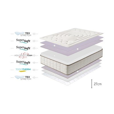 Technologia Duo-System® pozwala wybrać twardość materaca poprzez proste obrócenie go. Materac jest uzupełniony pokrowcem z elastycznej tkaniny 3D ze wzmocnionym obwodem i specjalnymi szwami dla lepszej zwartości. Jest antybakteryjny, antypleśniowy i antyroztoczowy, a także antystatyczny i antyalergiczny.