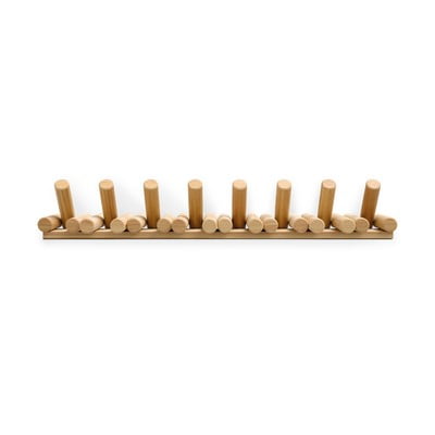 Wykonany jest z pięknego, fazowanego drewna sosnowego i posiada osiem haczyków na zawiasach. Każdy z nich może utrzymać ciężar do 2,3 kg, dzięki czemu można na nich powiesić płaszcze, torby lub biżuterię. Gdy wieszak nie jest używany, haczyki można złożyć, nadając mu elegancki i minimalistyczny wygląd.