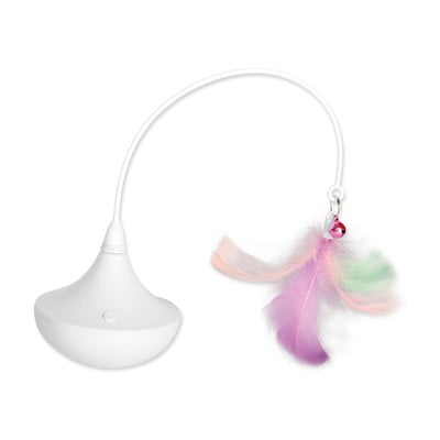 Interaktywna zabawka zapewni Twojemu kotu wiele godzin zabawy i stymulacji. Składa się z obrotowej podstawy z zawieszką z piór, która porusza się i trzepocze w różnych odstępach czasu. Pobudza to i wzmacnia naturalne instynkty łowieckie kotów. Aby zwiększyć atrakcyjność, w wyznaczonej dolnej części zabawki można umieścić kocimiętkę. Do działania wymagane są dwie baterie AA, które nie są dołączone do zestawu.
