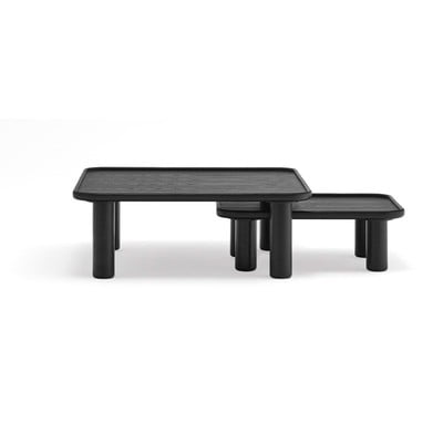 Zestaw stolików Nest marki Teluat składa się z dwóch mebli o różnych rozmiarach. Nogi wykonane są z drewna kauczukowego i uzupełnione płytą z fornirem jesionowym. Design z matowym czarnym wykończeniem idealnie wpasuje się we wnętrza w stylu skandynawskim.