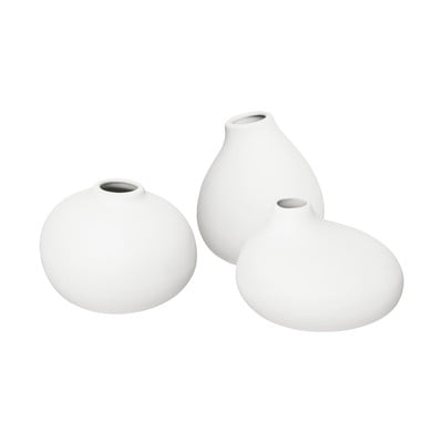 Zestaw 3 miniaturowych wazonów doskonale uzupełni styl całego wnętrza. Wazony wykonane są z wytrzymałej nieglazurowanej porcelany, a ich powierzchnia pozostaje nieco szorstka.