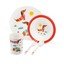 Zestaw zawiera również kubek o średnicy 6,2 cm i wysokości 9,1 cm, o pojemności około 200 ml. W zestawie znajdują się również sztućce – widelec ma 14 cm długości i 2,6 cm szerokości, a łyżka 14 cm długości i 3,2 cm szerokości.