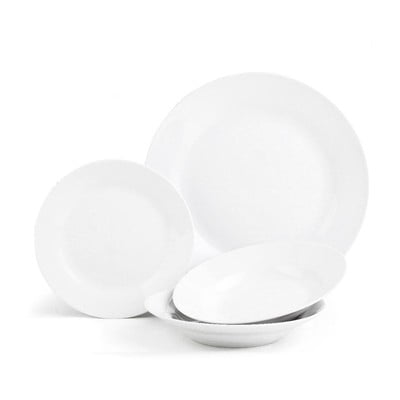 Prosty, ponadczasowy zestaw naczyń obiadowych.