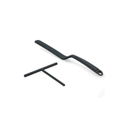 Zestaw zawiera dwa praktyczne akcesoria. Pierwszym z nich jest szpatułka w kształcie litery T o szerokości 14 cm, która ułatwia równomierne rozprowadzanie ciasta na patelni. Drugi to długa łopatka z praktycznym wygięciem, który ułatwia odwracanie i serwowanie naleśników. Przybory są wykonane z silikonu.