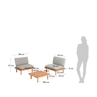 Zestaw mebli ogrodowychDla 2 osób, szary/w naturalnym kolorze, 3 szt.
