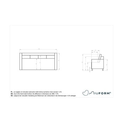 Sofa ma wygodne, szerokie siedzisko oraz oparcie z poduszkami, które można dowolnie układać. Miękka, aksamitna tapicerka daje dodatkowe poczucie przytulności.