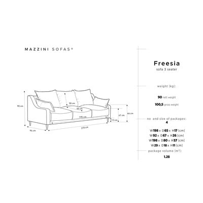 Rozkładane sofy Freesia popularnej marki Mazzini Sofas, będą doskonałym wyborem do salonu czy sypialni. Można je bowiem rozłożyć, by cieszyć się przestronnym łóżkiem. Świetne rozwiązanie dla małych pomieszczeń lub podczas wizyty. Sofa Mazzini Sofas Freesia posiada konstrukcję z litego drewna i płyty wiórowej, która może udźwignąć do 350 kg! Najwyższy komfort zapewnia wysokiej jakości miękkie wypełnienie piankowe. Zasługujesz na chwilę relaksu. Zrelaksuj się w dobrym stylu z kolekcją Freesia. Wymiary po rozłożeniu: 135 x 195 cm.