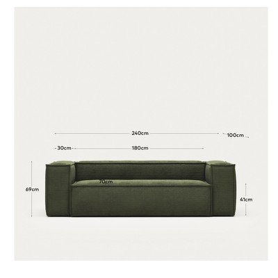 Zielona sztruksowa sofa 240 cm Blok – Kave Home