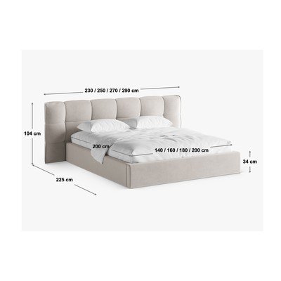Beżowe tapicerowane łóżko dwuosobowe ze schowkiem i stelażem 200x200 cm Eric – Micadoni
