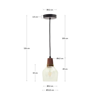 Lampa wisząca Silex marki Kave Home łączy w sobie elegancję zielonego szkła z ciepłem drewna orzechowego. Oprawa o średnicy 13 cm jest przystosowana do żarówek E27 o maksymalnej mocy 40 W. Żarówka nie jest dołączona do zestawu.