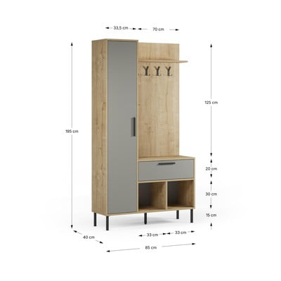 W dekorze dębuZ płyty wiórowejPowłoka: melaminaZielony/w naturalnym kolorzeSzerokość 108 cmWysokość 195 cmGłębokość 35 cm