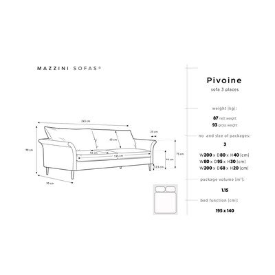 AksamitnaRozkładana/ze schowkiemNiebieskaTrzyosobowaSzerokość 245 cm