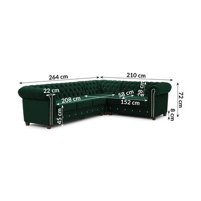 AksamitnyRozkładanyTypu chesterfieldPrawostronny/w kształcie litery LZielonyWodoodporny/plamoodpornyCzteroosobowySzerokość 264 cm