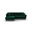 Zielony aksamitny rozkładany narożnik ze schowkiem (lewostronny/z szezlongiem) Kyoto – Cosmopolitan Design