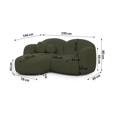 Zielony narożnik z materiału bouclé (lewostronny/z szezlongiem) Orbit – Ropez