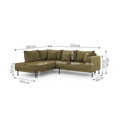 Z tkaniny szenilowejLewostronny/w kształcie litery LZielonyOdpowiedni dla zwierząt domowych/plamoodpornyCzteroosobowySzerokość 233 cm