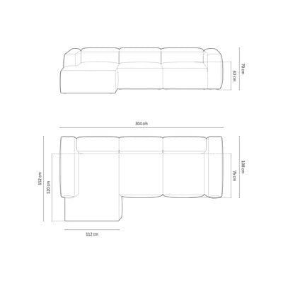 Sztruksowy, lewostronny/z szezlongiem, zielony, czteroosobowy, szerokość 304 cm