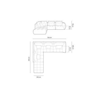Aksamitny, lewostronny/w kształcie litery L, odpowiedni dla zwierząt domowych/plamoodporny, żółty, powyżej 4 osób, szerokość 316 cm
