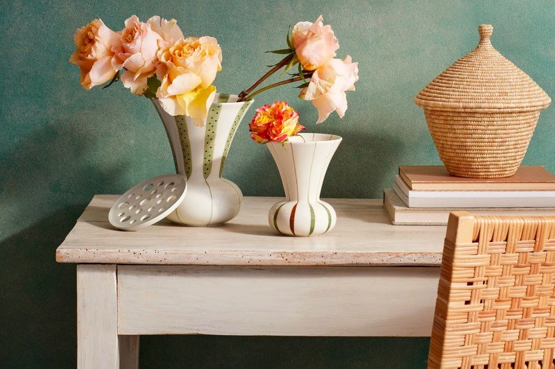 Ręcznie malowany, kamionkowy, biały/zielony, ø 16 cm, wysokość 20 cm