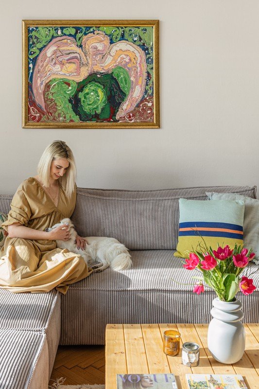 Bawełniana, żółta/beżowa, ze zdejmowaną poszewką, 45x45 cm